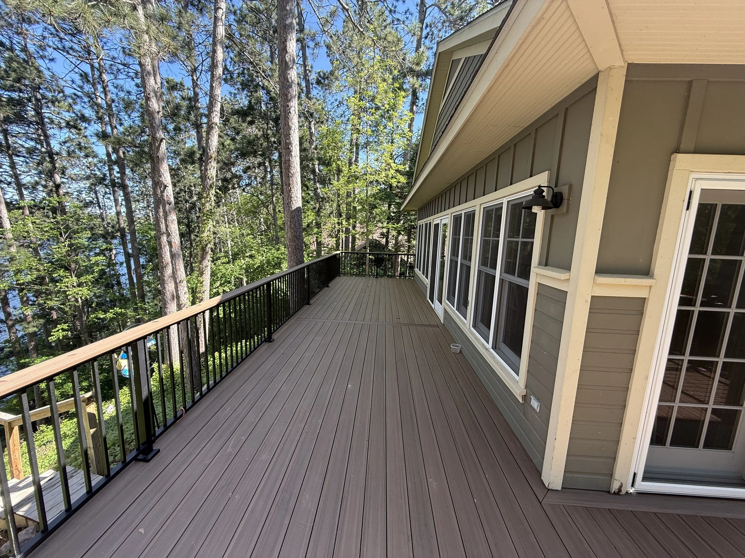 Our deck replacement process is straightforward: we remove existing decking and railings, repair or replace any missing or damaged house flashing, and install new maintenance-free decking, fascia boards, and railings. We upgrade existing framing with any code-required brackets or fasteners and install solar-powered stair lights to meet current code requirements